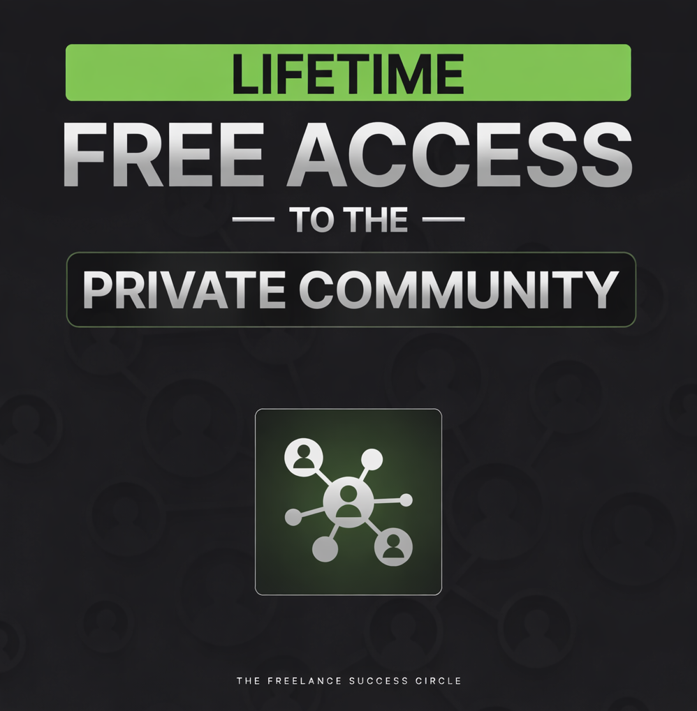 Lifetime Access to the Private Community: Connect with other freelancers, ask questions, get feedback, and stay accountable inside a members-only group designed to keep you moving forward
